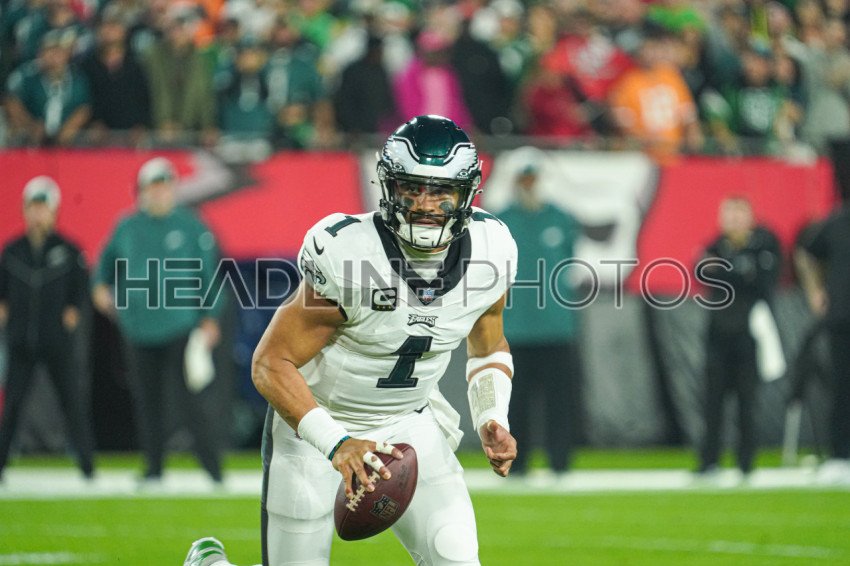 Tampa Bay, Florida, USA, January 15, 2024, Philadelphia Eagles quarterback Jalen Hurts #1 on the run at Raymond James Stadium. (Photo Credit: Marty Jean-Louis)
