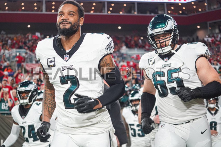 Tampa Bay, Florida, USA, January 15, 2024, Philadelphia Eagles players Darius Slay #2 and Lane Johnson #65 at Raymond James Stadium. (Photo Credit: Marty Jean-Louis)