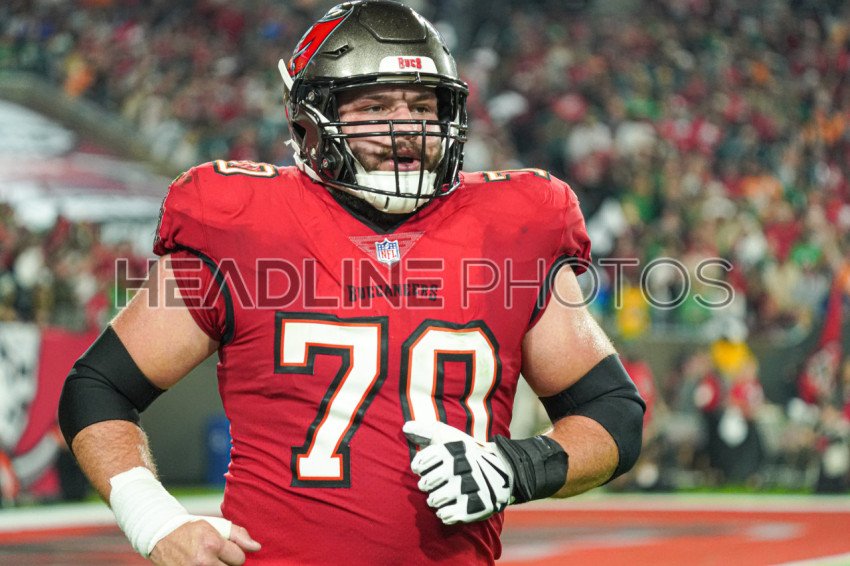 Tampa Bay, Florida, USA, January 15, 2024, Tampa Bay Buccaneers player Robert Hainsey #70 at Raymond James Stadium. (Photo Credit: Marty Jean-Louis)