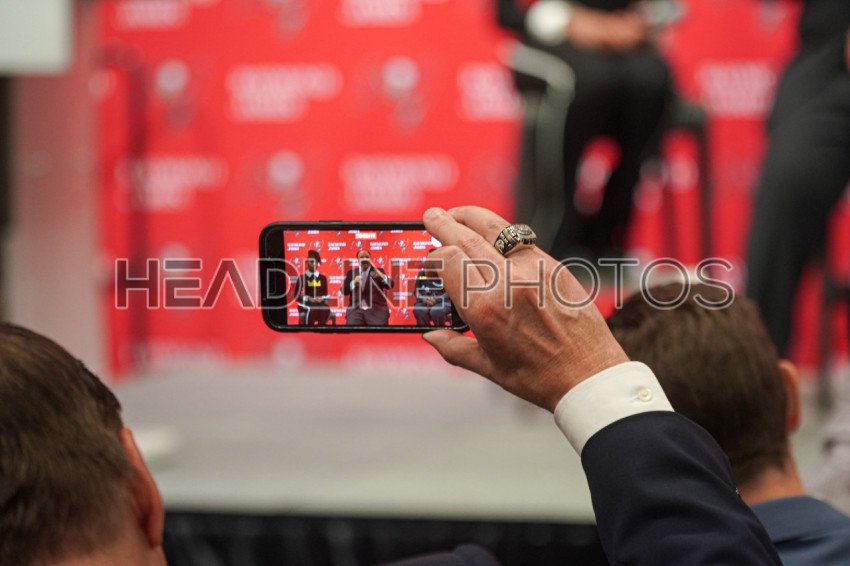 Tampa Bay, Florida, USA, January 15, 2024, Yolanda Renee King, Martin Luther King Jr III and Arndrea Waters King speak to the press during Martin Luther King's Day before the Tampa Bay Buccaneers and Philadelphia Eagles game at Raymond James Stadium. (Photo Credit: Marty Jean-Louis)
