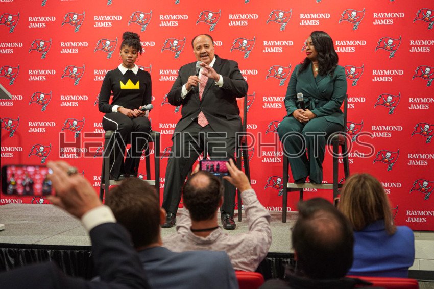 Tampa Bay, Florida, USA, January 15, 2024, Yolanda Renee King, Martin Luther King Jr III and Arndrea Waters King speak to the press during Martin Luther King's Day before the Tampa Bay Buccaneers and Philadelphia Eagles game at Raymond James Stadium. (Photo Credit: Marty Jean-Louis)