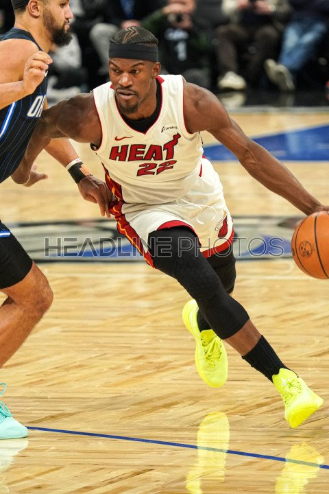Orlando, Florida, USA, January 31, 2024, Miami Heat forward Jimmy Butler #22 rushes forward at the Kia Center. (Photo Credit: Marty Jean-Louis)