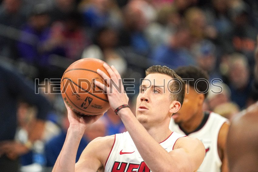 Orlando, Florida, USA, January 31, 2024, Miami Heat guard Duncan Robinson #55 shoots a free throw in the first half at the Kia Center. (Photo Credit: Marty Jean-Louis)