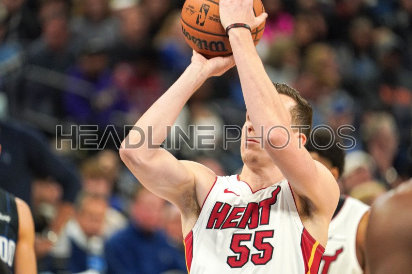 Orlando, Florida, USA, January 31, 2024, Miami Heat guard Duncan Robinson #55 shoots a free throw in the first half at the Kia Center. (Photo Credit: Marty Jean-Louis)