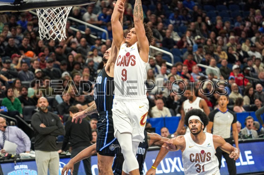 Orlando, Florida, USA, January 22, 2024, Cleveland Cavaliers guard Craig Porter Jr #9 attempt to make a dunk in the first half at the Kia Center. (Photo Credit: Marty Jean-Louis)
