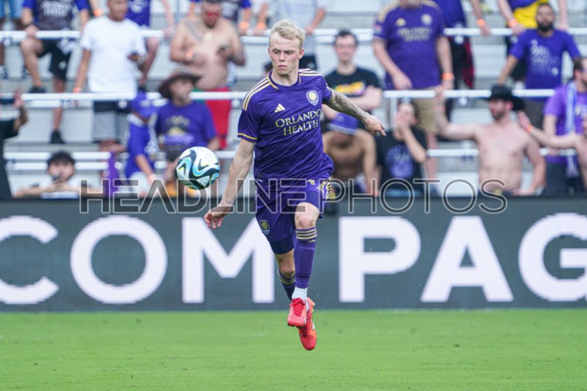 Orlando, Florida, USA, April 29, 2023, Orlando City SC player Dagur Thórhallsson runs up field during the FC Series at Inter&Co Stadium. (Photo Credit: Marty Jean-Louis)