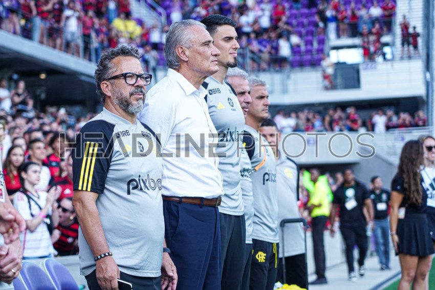 Orlando, Florida, USA, April 29, 2023, Flamengo coaching staff including Tite during the National anthem during the FC Series at Inter&Co Stadium. (Photo Credit: Marty Jean-Louis)