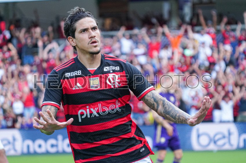 Orlando, Florida, USA, April 29, 2023, Flamengo forward Pedro Abreu dos Santos #9 reacts after making a goal in the first half during the FC Series at Inter&Co Stadium. (Photo Credit: Marty Jean-Louis)
