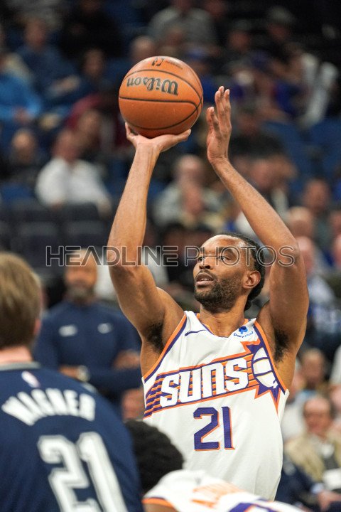 Orlando, Florida, USA, January 28, 2024, Phoenix Suns forward Keita Bates-Diop #21 shoots a free throw at the Kia Center. (Photo Credit: Marty Jean-Louis)