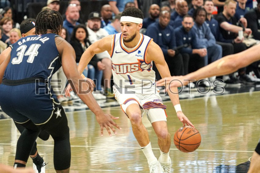 Orlando, Florida, USA, January 28, 2024, Phoenix Suns guard Devin Booker #1 rushes forward in the first half at the Kia Center. (Photo Credit: Marty Jean-Louis)