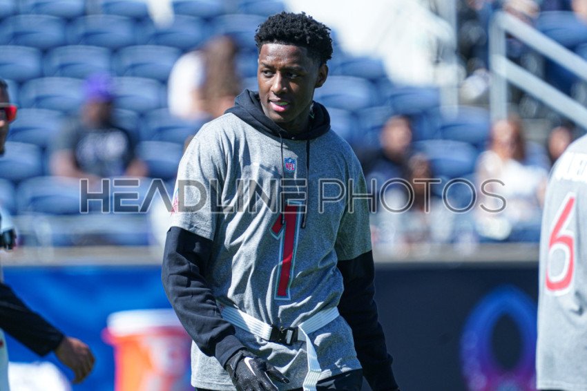 Orlando, Florida, USA, February 2, 2024, Sauce Gardner #1 of the New York Jets During AFC vs NFC NFL Pro Bowl Practice Session at Camping World Stadium. (Photo Credit: Marty Jean-Louis)