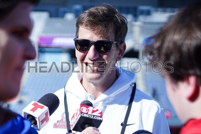 Orlando, Florida, USA, February 2, 2024, Eli Manning During AFC vs NFC NFL Pro Bowl Practice Session at Camping World Stadium. (Photo Credit: Marty Jean-Louis)