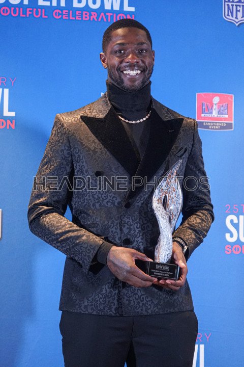 Las Vegas, Nevada, USA, February 7, Dallas Cowboys Safety Markquese Bell posing for photos after receiving an award during the 25th Annual Super Bowl Soulfoul Celebration at the Palms Resort in Las Vegas, Nevada. (Photo Credit: Marty Jean-Louis)