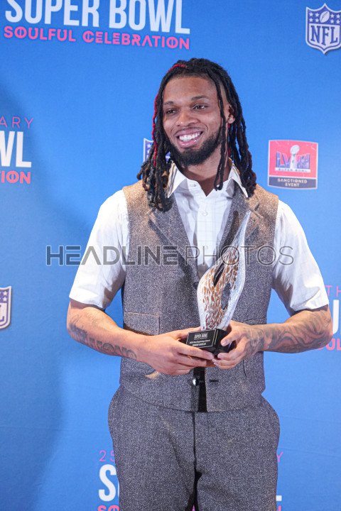 Las Vegas, Nevada, USA, February 7, Bufallo Bills Safety Damar Hamlin back stage after receiving an award during the 25th Annual Super Bowl Soulfoul Celebration at the Palms Resort in Las Vegas, Nevada. (Photo Credit: Marty Jean-Louis)