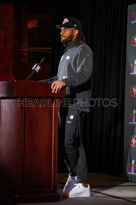 Henderson, Nevada, USA, February 8, 2024, 49ers Linebacker Fred Warner during the Pre Super Bowl Press Conference (Photo Credit: Marty Jean-Louis)