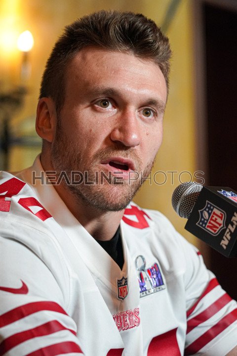 Henderson, Nevada, USA, February 8, 2024, 49ers running back Kyle Juszczyk during the Pre Super Bowl Press Conference (Photo Credit: Marty Jean-Louis)