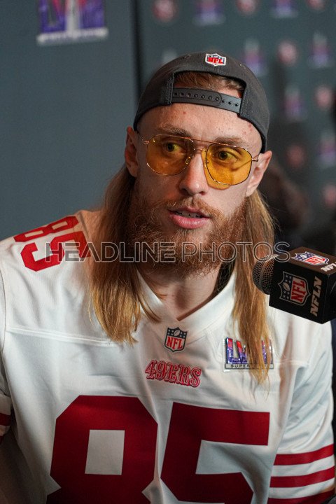 Henderson, Nevada, USA, February 8, 2024, 49ers tight end George Krieger Kittle during the Pre Super Bowl Press Conference (Photo Credit: Marty Jean-Louis)