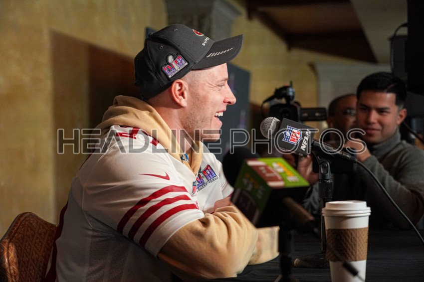 Henderson, Nevada, USA, February 8, 2024, 49ers Running back Christian McCaffrey during the Pre Super Bowl Press Conference (Photo Credit: Marty Jean-Louis)