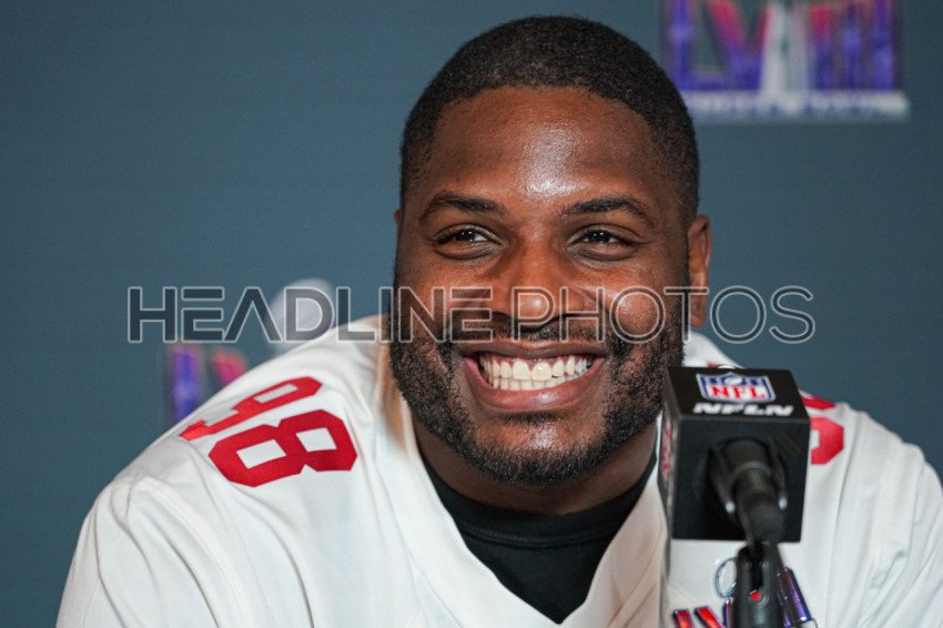 Henderson, Nevada, USA, February 8, 2024, 49ers defensive Tackle Javon Hargrave during the Pre Super Bowl Press Conference (Photo Credit: Marty Jean-Louis)