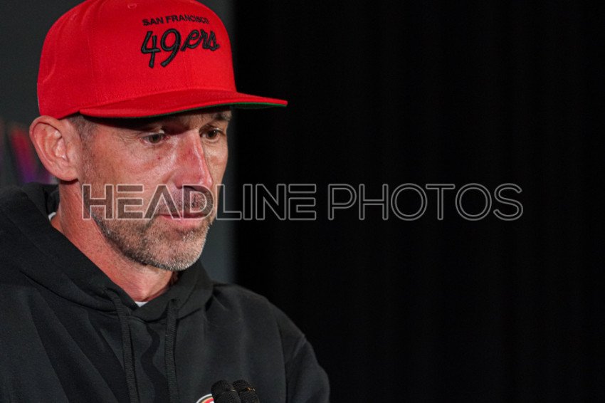 Henderson, Nevada, USA, February 8, 2024, 49ers head coach Kyle Shanahan during the Pre Super Bowl Press Conference (Photo Credit: Marty Jean-Louis)