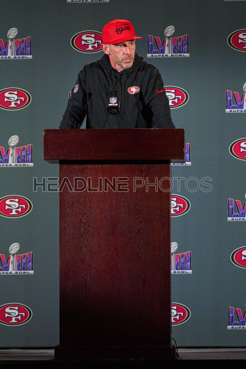Henderson, Nevada, USA, February 8, 2024, 49ers head coach Kyle Shanahan during the Pre Super Bowl Press Conference (Photo Credit: Marty Jean-Louis)