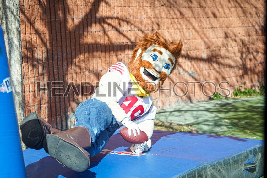 Henderson, Nevada, USA, February 9, 2024, 49ers Mascott Sourdough Sam catches a ball during the Walter Payton NFL Man of the Year Event At the Donald W. Reynolds Boys & Girls Club (Photo Credit: Marty Jean-Louis)