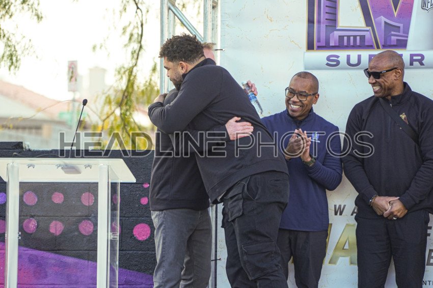 Henderson, Nevada, USA, February 9, 2024, NFL Commissioner Roger Goodell embracing Cameron Heyward during the Walter Payton NFL Man of the Year Event At the Donald W. Reynolds Boys & Girls Club (Photo Credit: Marty Jean-Louis)