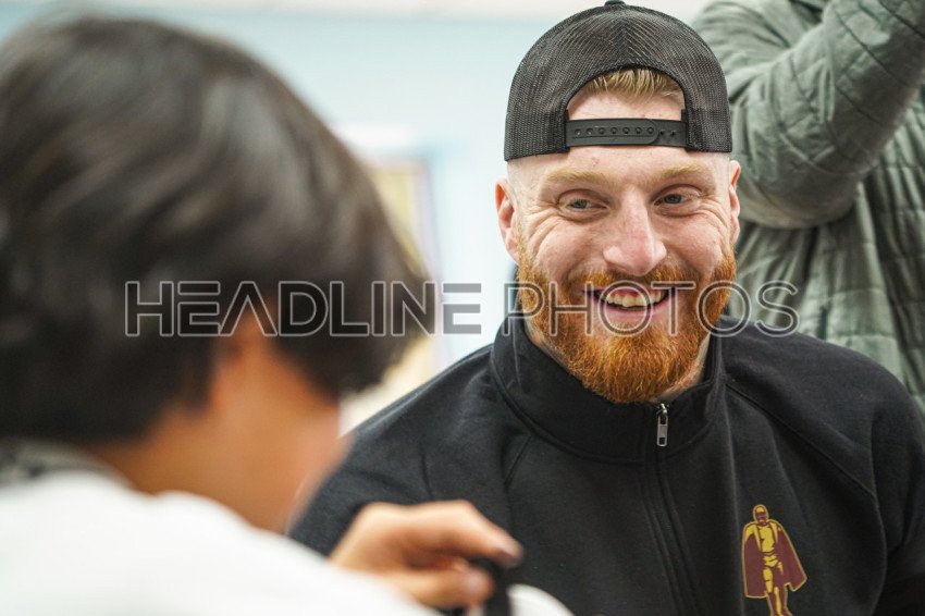 Henderson, Nevada, USA, February 9, 2024, Maxx Crosby smiles as he watches during the Walter Payton NFL Man of the Year Event At the Donald W. Reynolds Boys & Girls Club (Photo Credit: Marty Jean-Louis)