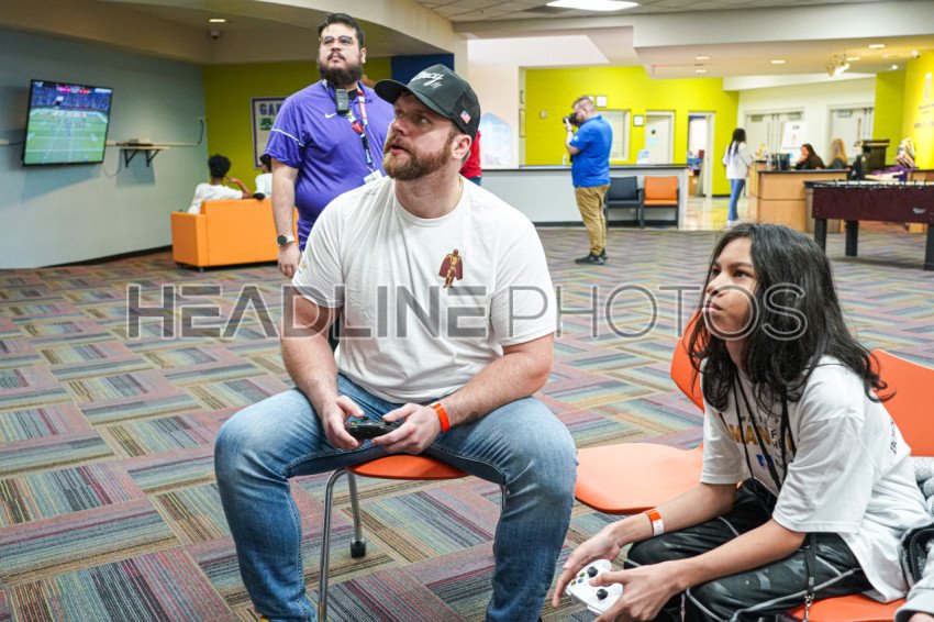 Henderson, Nevada, USA, February 9, 2024, TED KARRAS #64 playing Madden with two kids during the Walter Payton NFL Man of the Year Event At the Donald W. Reynolds Boys & Girls Club (Photo Credit: Marty Jean-Louis)