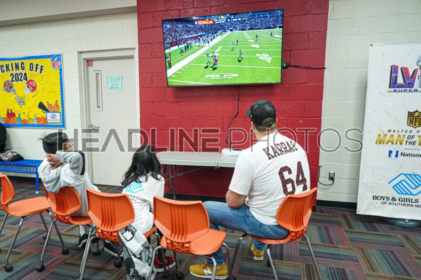 Henderson, Nevada, USA, February 9, 2024, TED KARRAS #64 playing Madden with two kids during the Walter Payton NFL Man of the Year Event At the Donald W. Reynolds Boys & Girls Club (Photo Credit: Marty Jean-Louis)