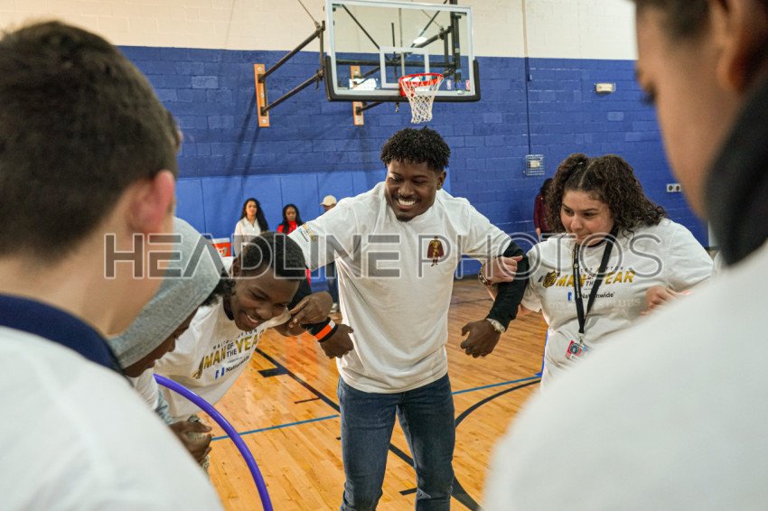 Henderson, Nevada, USA, February 9, 2024, JONATHAN JONES of the Patriots doing some team building exercises during the Walter Payton NFL Man of the Year Event At the Donald W. Reynolds Boys & Girls Club (Photo Credit: Marty Jean-Louis)