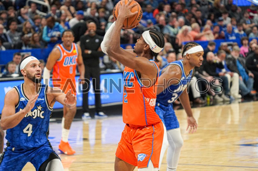 Orlando, Florida, USA, February 13, 2024, Oklahoma Thunder guard Shai Gilgeous-Alexander #2 attempt to score during the second half at the Kia Center. (Photo Credit: Marty Jean-Louis)