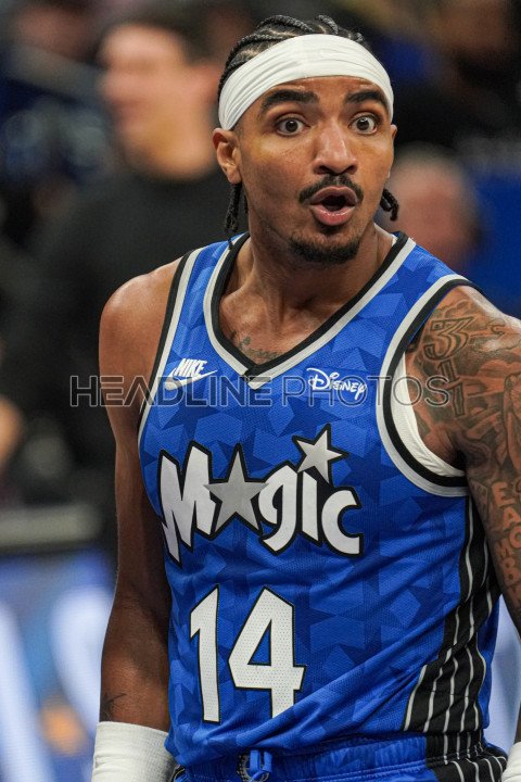 Orlando, Florida, USA, February 13, 2024, Orlando Magic guard Garry Harris shocked after a ref call in the second half at the Kia Center. (Photo Credit: Marty Jean-Louis)