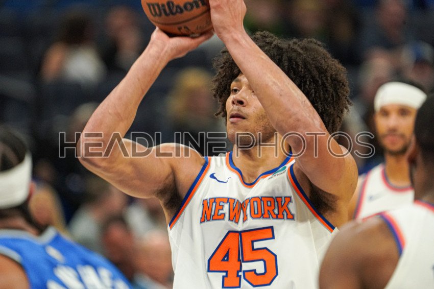Orlando, Florida, USA, February 14, 2024, New York Knicks center Jericho Sims #45 shoots a free throw in the first at the Kia Center. (Photo Credit: Marty Jean-Louis)