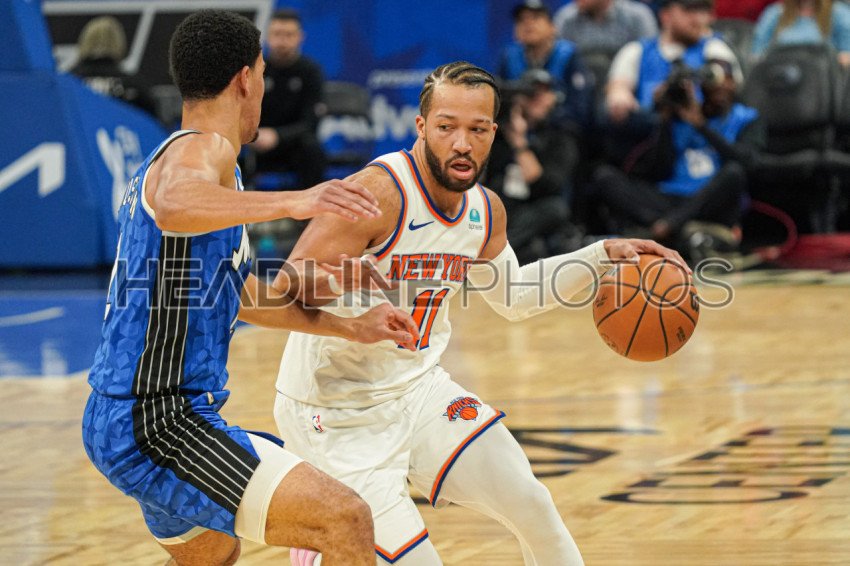 Orlando, Florida, USA, February 14, 2024, New York Knicks guard Jalen Brunson #11 attempt to run pass Caleb Houstan #2 at the Kia Center. (Photo Credit: Marty Jean-Louis)