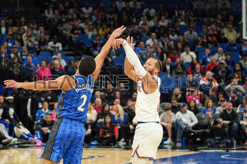 Orlando, Florida, USA, February 14, 2024, New York Knicks guard Jalen Brunson #11 shoots a three in the first at the Kia Center. (Photo Credit: Marty Jean-Louis)