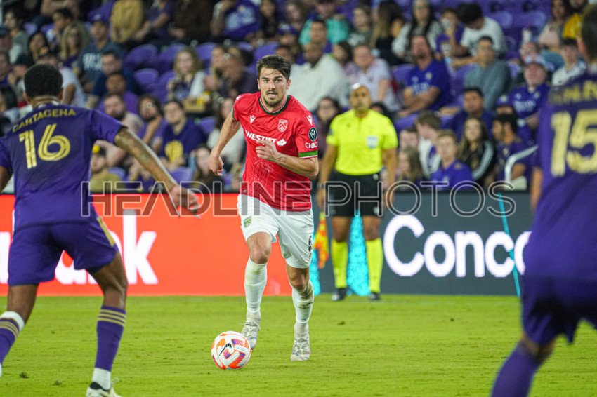 Orlando, Florida, USA, Calvary FC, Calvary FC player Charlie Trafford #6 runs up field at Inter&Co Stadium in the CONCACAF Champions Cup Match. (Photo Credit: Marty Jean-Louis)