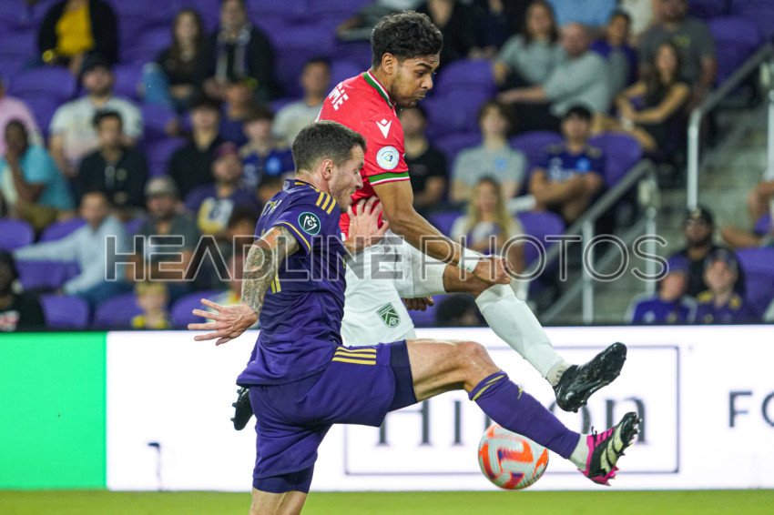Orlando, Florida, USA, Calvary FC, Calvary FC player Shamit Shome #26 attempt to make a pass but is blocked at Inter&Co Stadium in the CONCACAF Champions Cup Match. (Photo Credit: Marty Jean-Louis)