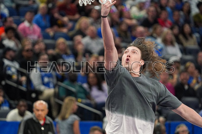 Orlando, Florida, USA, February 27, 2024, Kansas City Chief Punter Tommy Townsend playing some basketball during half time at the Kia Center. (Photo Credit: Marty Jean-Louis)