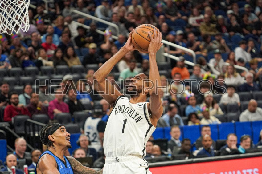 Orlando, Florida, USA, February 27, 2024, Brooklyn Nets forward Mikal Bridges #1 attempt to score at the Kia Center. (Photo Credit: Marty Jean-Louis)