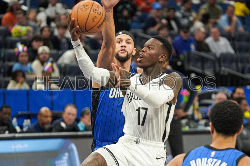 Orlando, Florida, USA, February 27, 2024, Brooklyn Nets guard Dennis Schroder #17 attempt to make a basket at the Kia Center. (Photo Credit: Marty Jean-Louis)