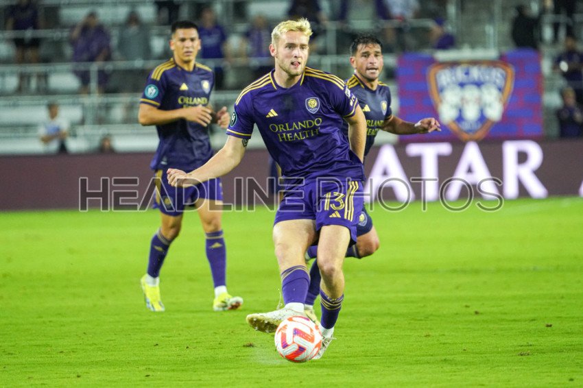 Orlando, Florida, USA, March 5, 2024, Orlando City SC forward Duncan McGuire #13 makes a pass during the CONCACAF Champions Cup at Inter&Co Stadium. (Photo Credit: Marty Jean-Louis)