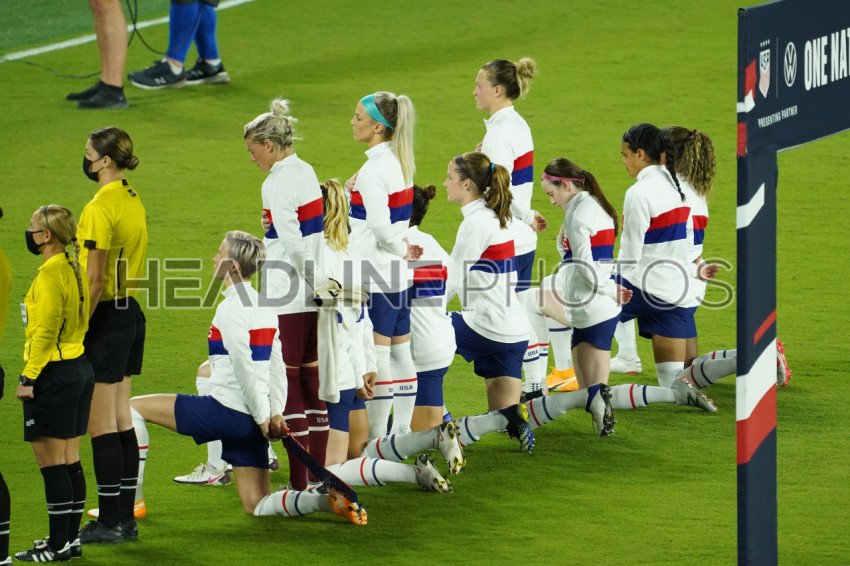 Orlando, Florida, USA, January 22, 2021, US Women's National Team Kneel during an International Friendly Match against Colombia. (Photo Credit: Marty Jean-Louis)