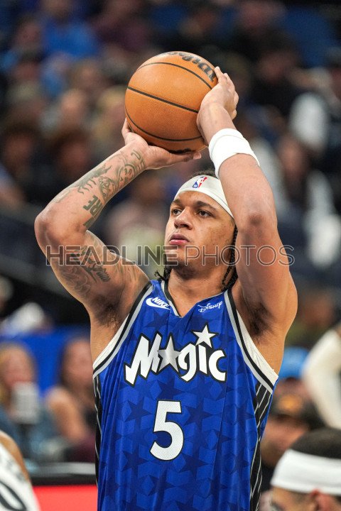 Orlando, Florida, USA, March 13, 2024, Orlando Magic forward Paolo Banchero #5 shoots a free throw in the fourth at the Kia Center. (Photo Credit: Marty Jean-Louis)