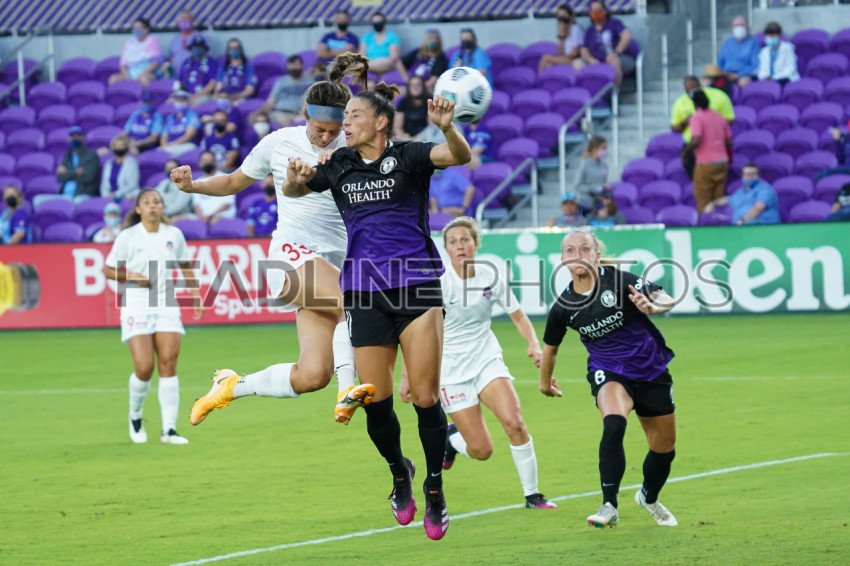 Orlando, Florida, USA, May 16, 2021, Washington Spirit Forward Ashley Hatch #33 makes a header to score against the Orlando Pride at Exploria Stadium (Photo Credit: Marty Jean-Louis)
