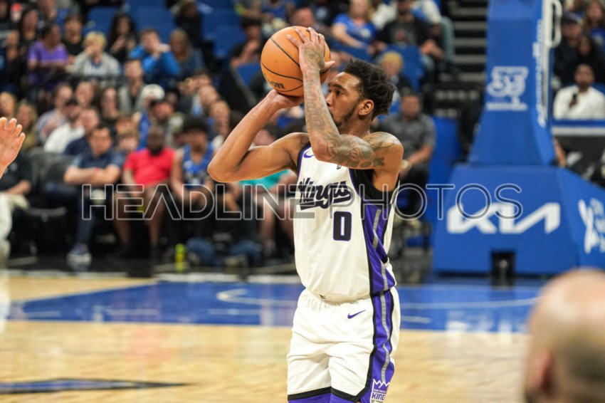 Orlando, Florida, USA, March 23, 2024, Sacramento Kings guard Malik Monk #0 shoot a three at the Kia Center. (Photo Credit: Marty Jean-Louis)