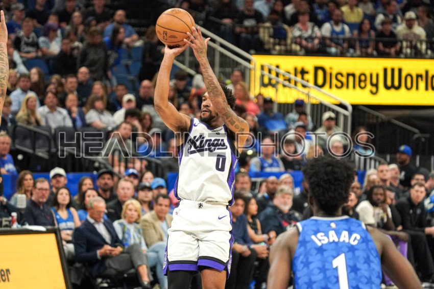 Orlando, Florida, USA, March 23, 2024, Sacramento Kings guard Malik Monk #0 shoot a three at the Kia Center. (Photo Credit: Marty Jean-Louis)