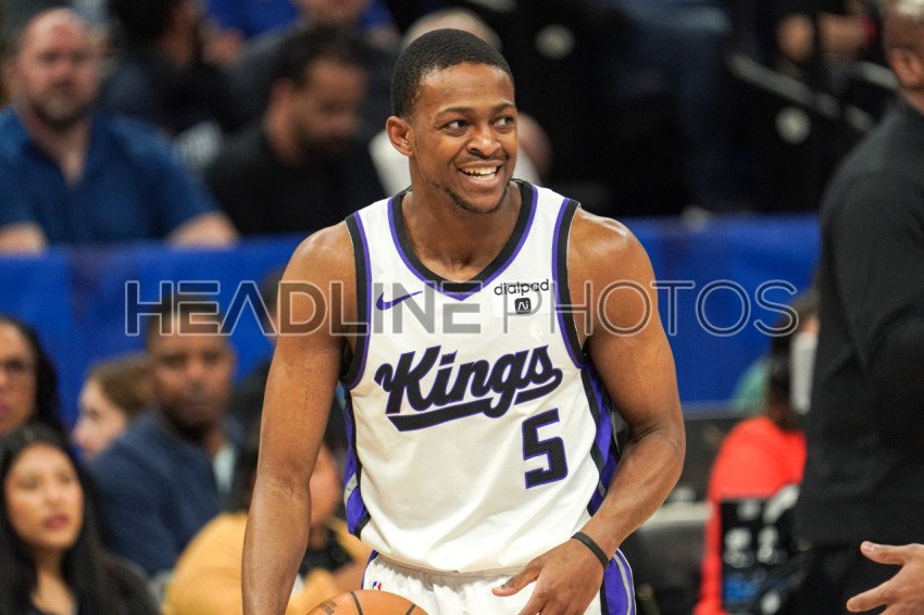 Orlando, Florida, USA, March 23, 2024, Sacramento Kings guard De'Aaron Fox #5 smiles after he's fouled in the first half at the Kia Center. (Photo Credit: Marty Jean-Louis)