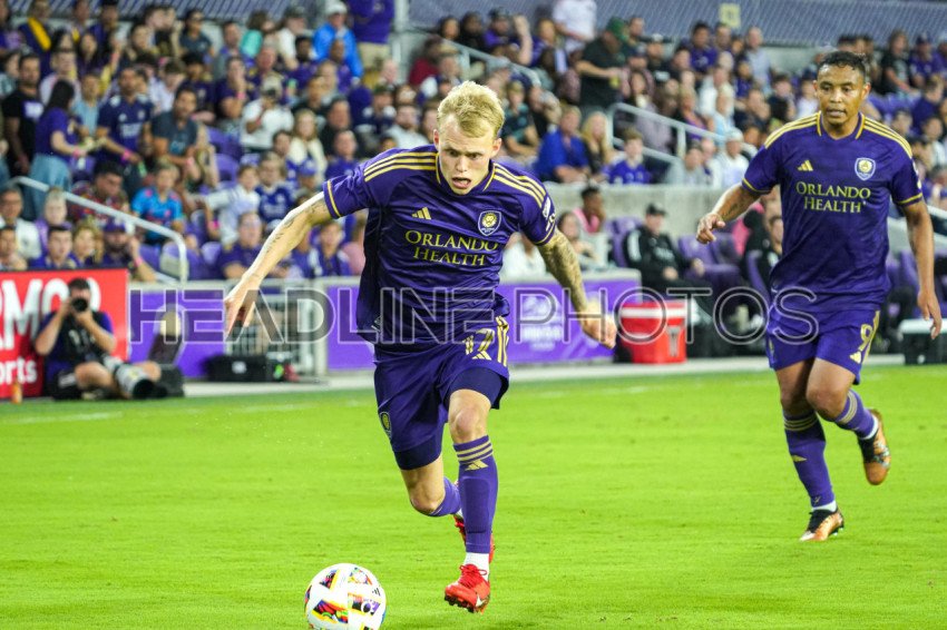 Orlando, Florida, USA, March 23, 2024, Orlando City SC defender Dagur Thorhallsson #17 runs up field at Inter&Co Stadium. (Photo Credit: Marty Jean-Louis)