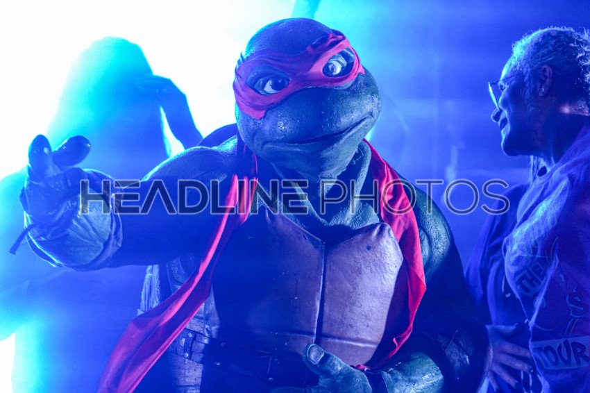 Orlando, Florida, USA, March 23, 2024, Ninja Turtle Michael Angelo dancing while Rapper Vanilla Ice (Robert Matthew Van Winkle) performs during a 90s concert hosted by Orlando City SC at Inter&Co Stadium. (Photo Credit: Marty Jean-Louis)